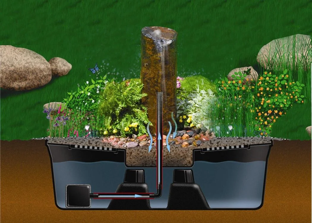 Most of our garden fountain installations use an aquabasin water storage basin.